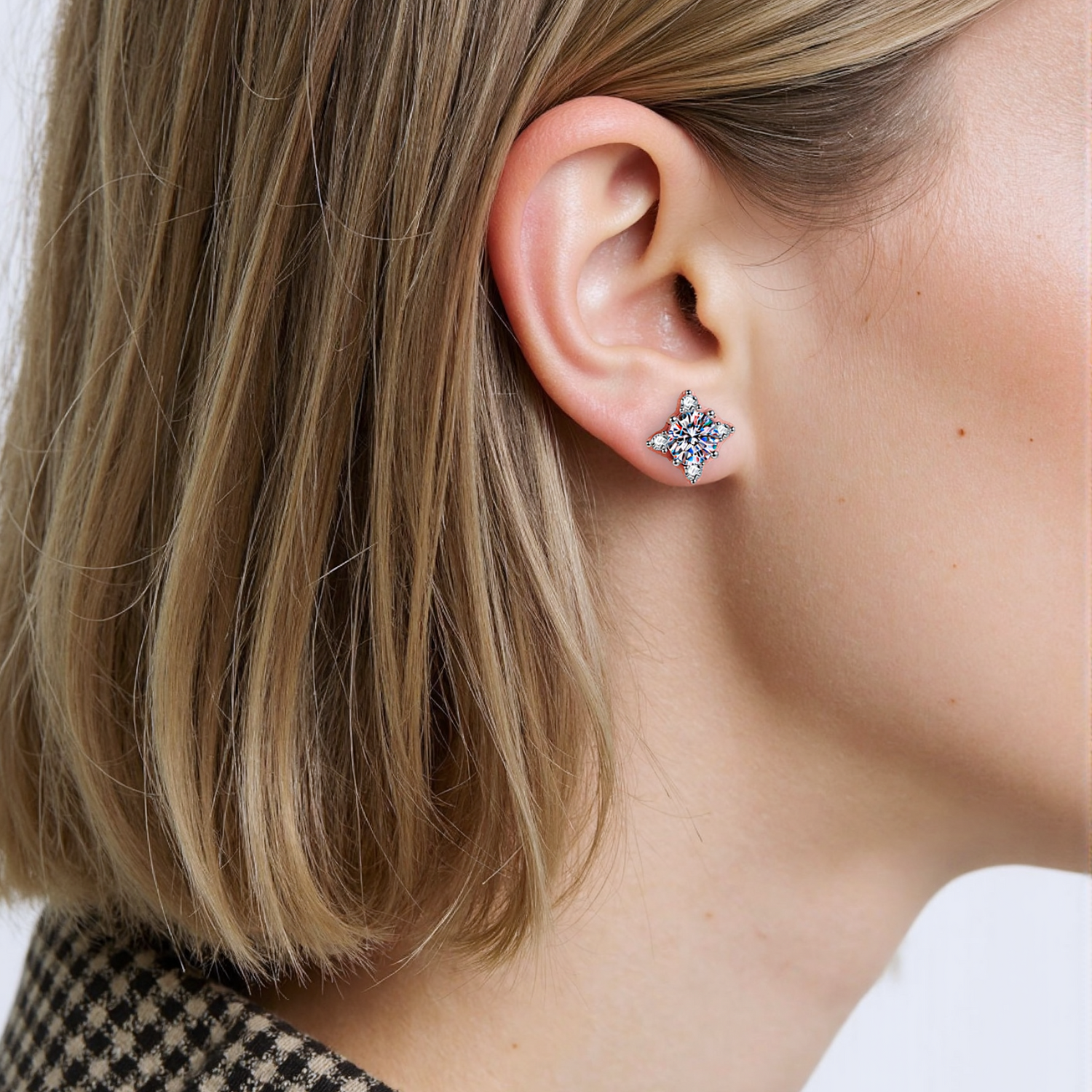 Discover timeless elegance with our North Star Studs—crafted in sterling silver and shimmering moissanite.