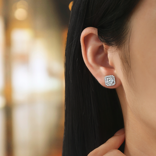 1 Carat Each Halo Moissanite Stud Earrings for Women and Men