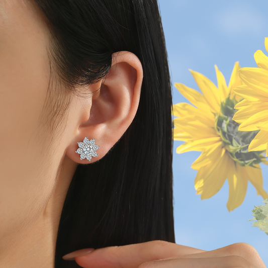 0.5 Carat Sparkling Sunflower Stud Earring - Moissanite Earrings for Women & Men