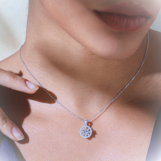 1 Carat Round Center Stone with Halo Dainty Moissanite Necklace for Women