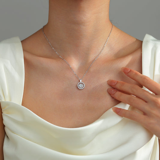 Floating Moissanite Pendant Necklace for Women, 1 Carat Solitaire with Halo Design