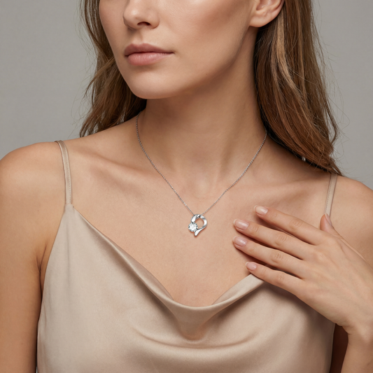 callalove Moissanite Heart Floral Necklace for Women