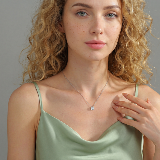 Floating Moissanite Pendant Necklace for Women, 1 Carat Solitaire with Halo Design