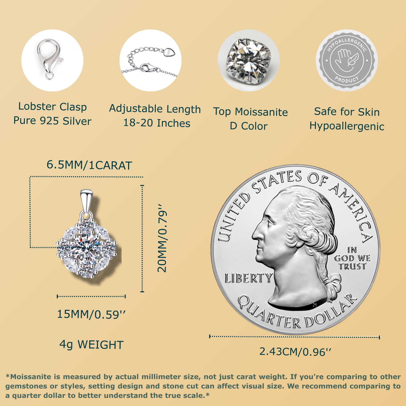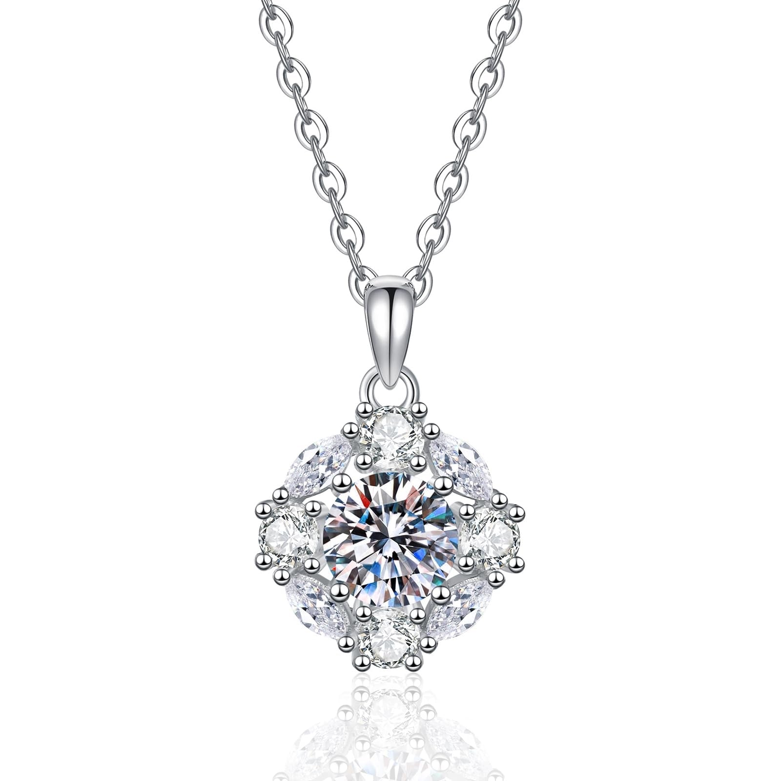 1CT Moissanite Pendant Necklaces for Women, 925 Silver Necklace Jewelry for Women