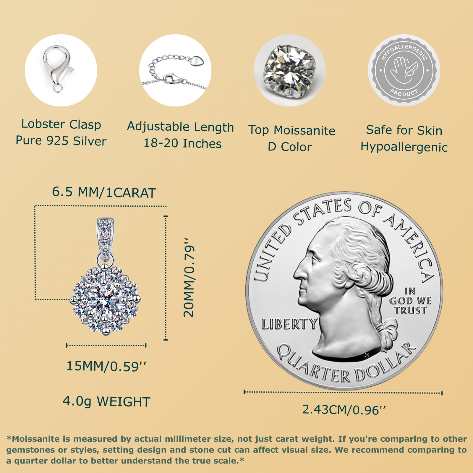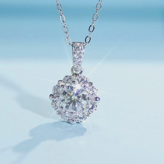 1 Carat Round Center Stone with Halo Dainty Moissanite Necklace for Women