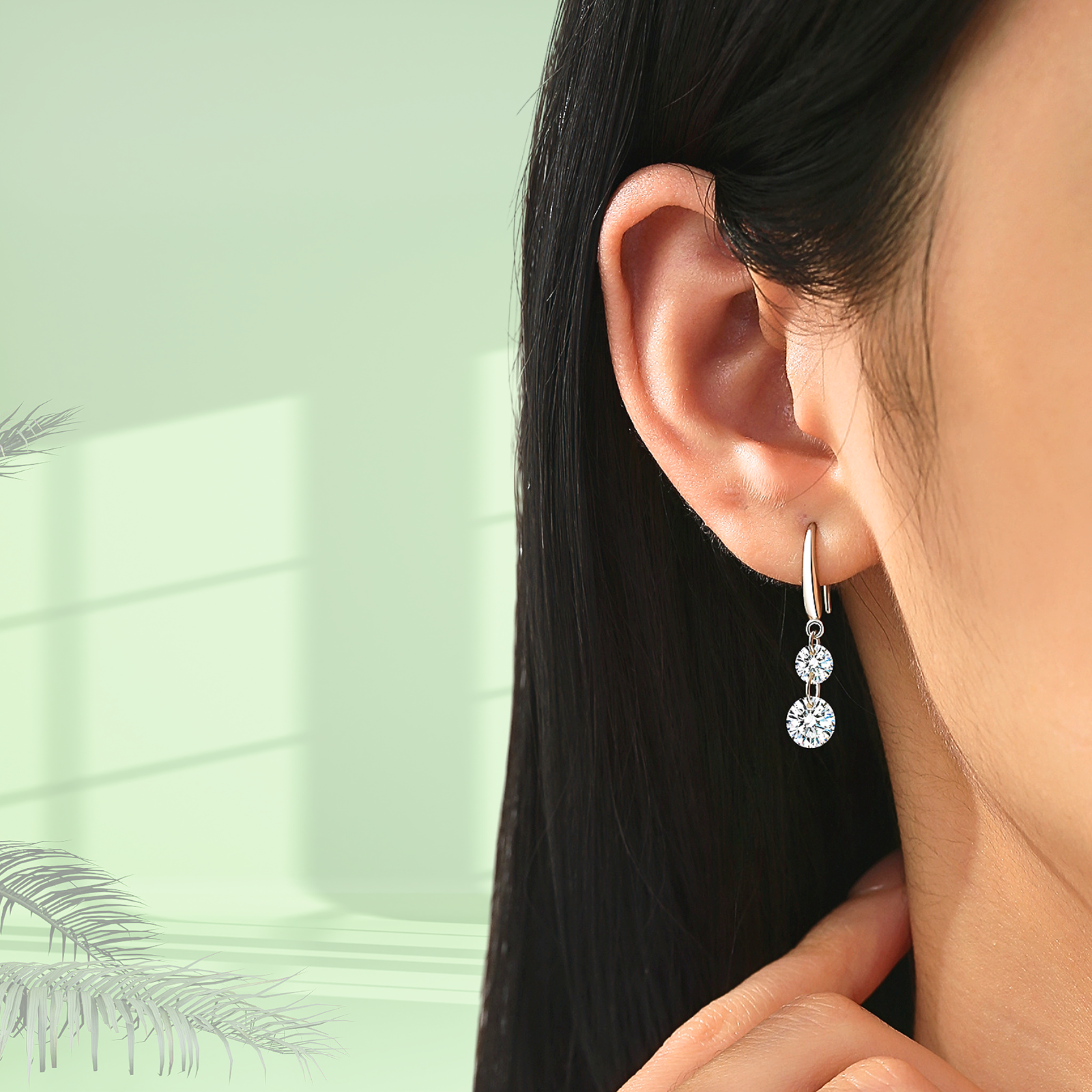 These 3 Carat Moissanite Dangle Earrings feature two 1.5-carat stones each, expertly cut to maximize brilliance and fire. Designed for women who appreciate refined elegance, the earrings offer a striking sparkle comparable to diamonds while providing exceptional durability. Their dangle style adds graceful movement, making them perfect for both everyday wear and special occasions. Crafted with precision, these earrings combine timeless beauty with lasting quality.