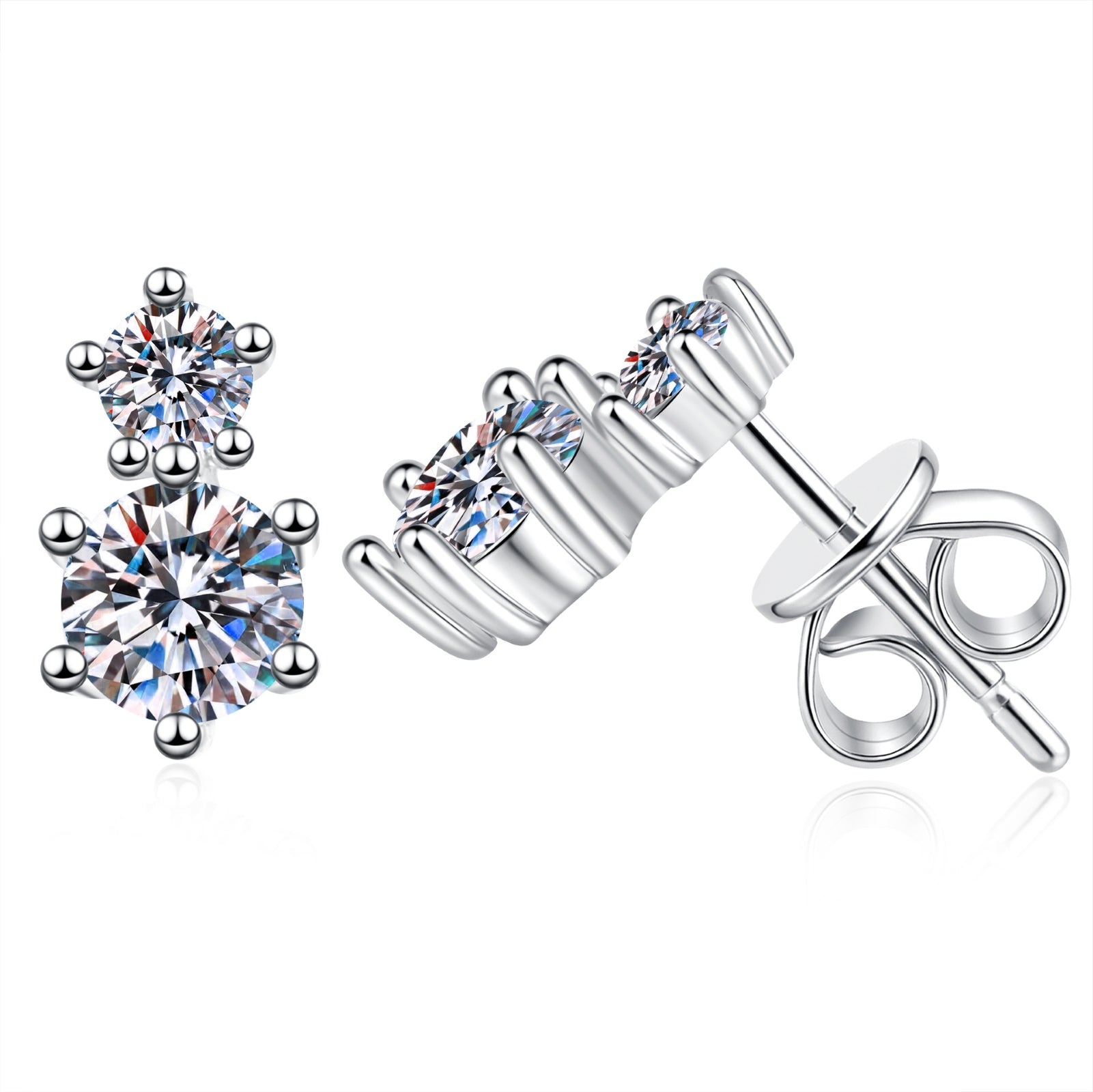 Moissanite Stud Earrings for Women 2-Stone Graduated 0.6ct & 0.3ct Prong Design