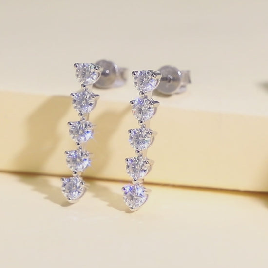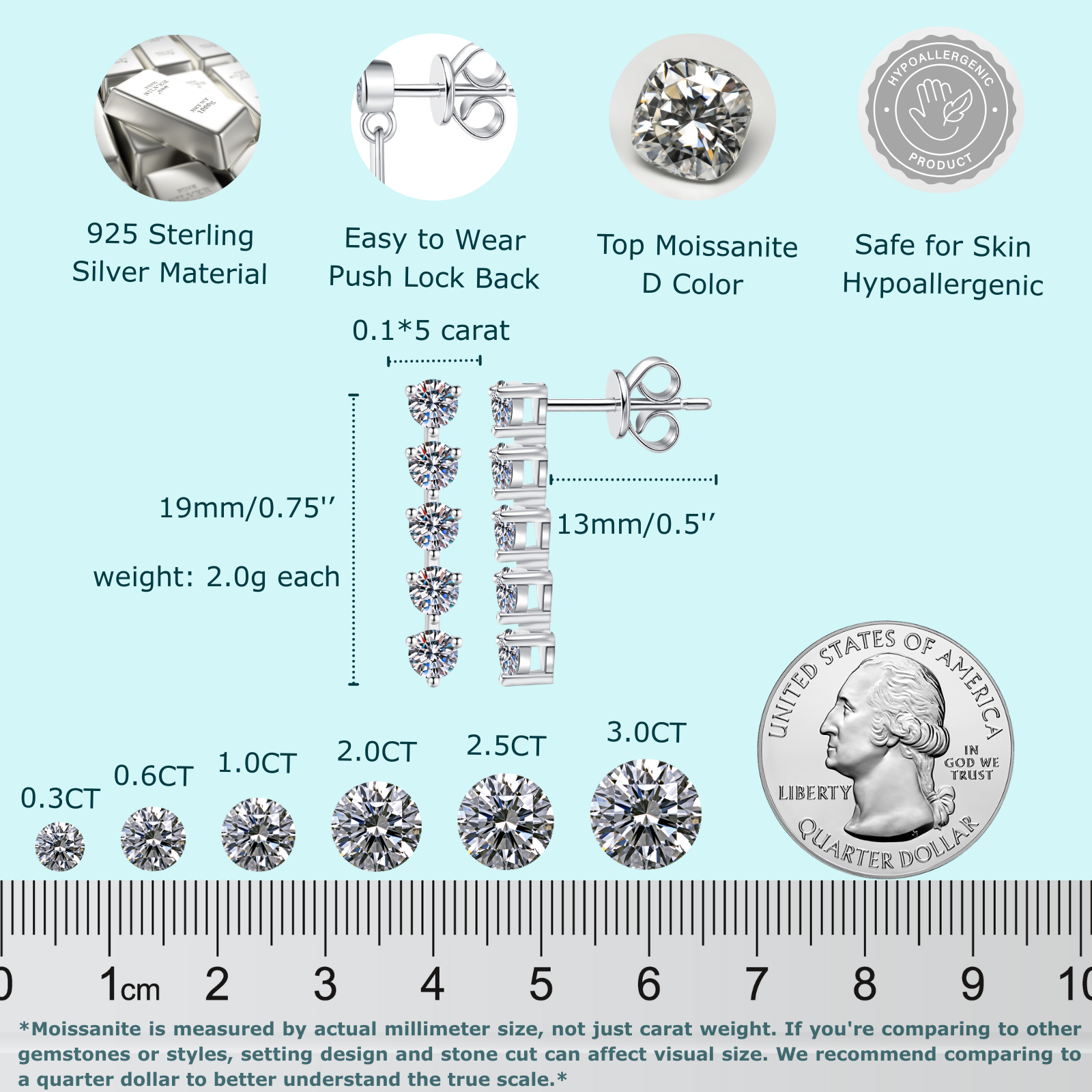 These 5-stone moissanite stud earrings showcase five brilliant 0.1 ct moissanite stones, delivering exceptional sparkle with every angle. Crafted from hypoallergenic 925 sterling silver, they ensure comfort and safety for sensitive skin. The secure push-back design keeps the earrings firmly in place, making them ideal for daily wear or special occasions. A sophisticated and lasting gift choice, these studs combine enduring quality with refined elegance.