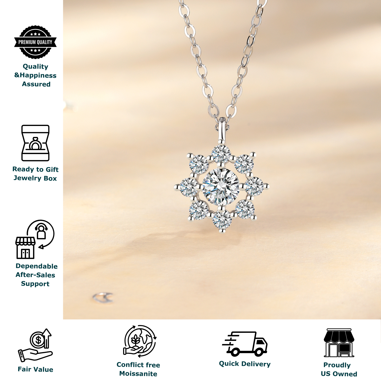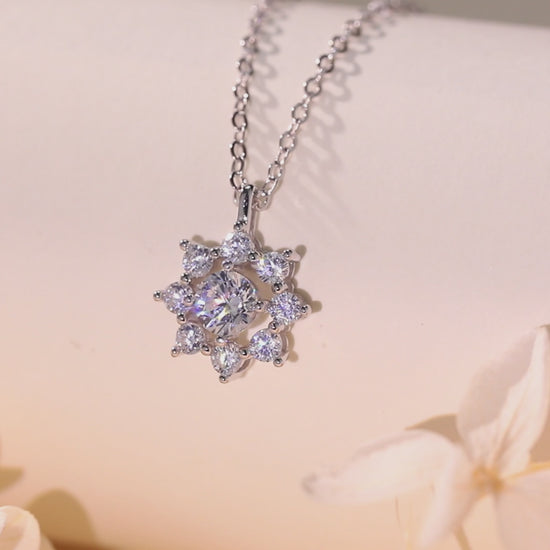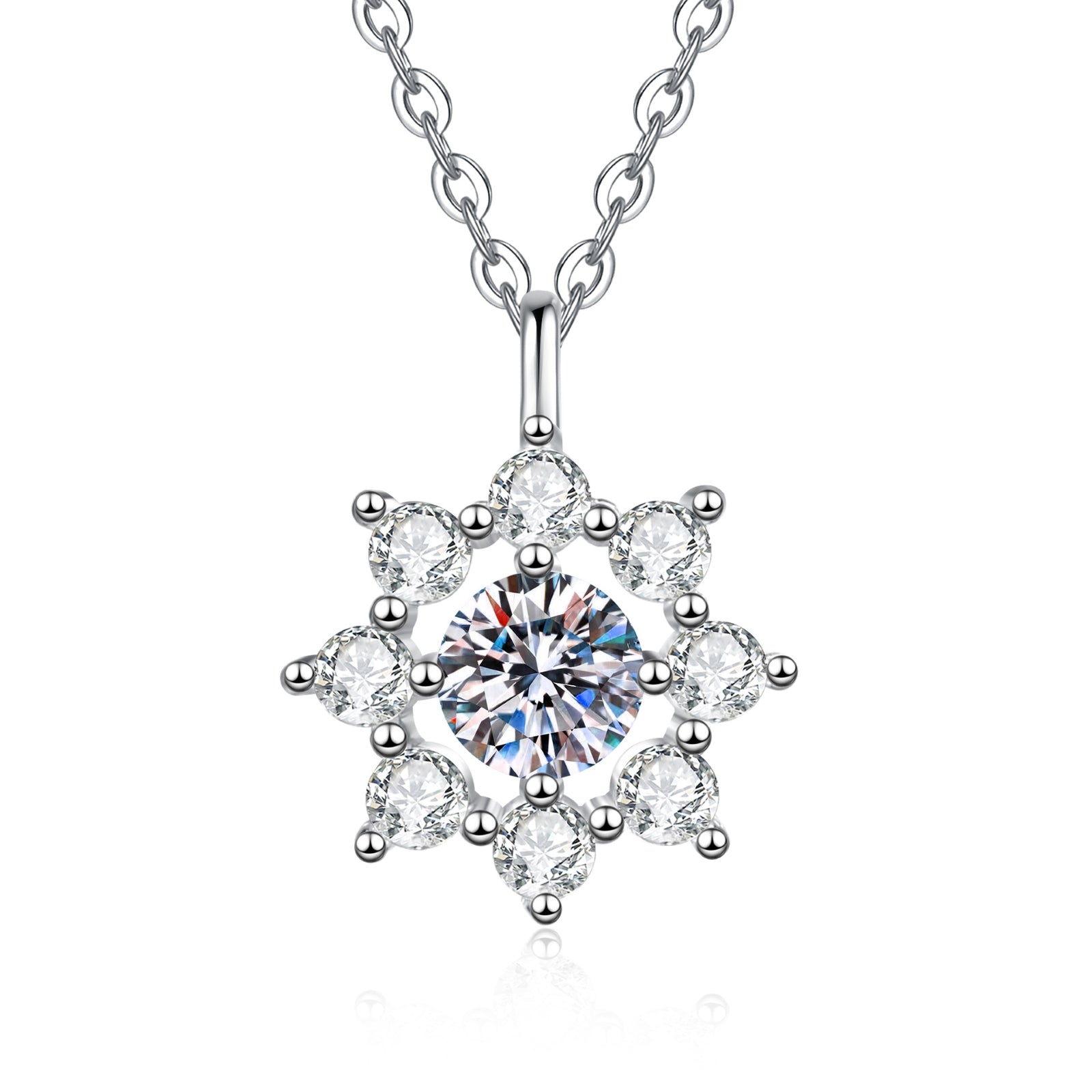 Moissanite Sunflower Pendant Necklace for Women, 1 Carat Moissanite Stone
