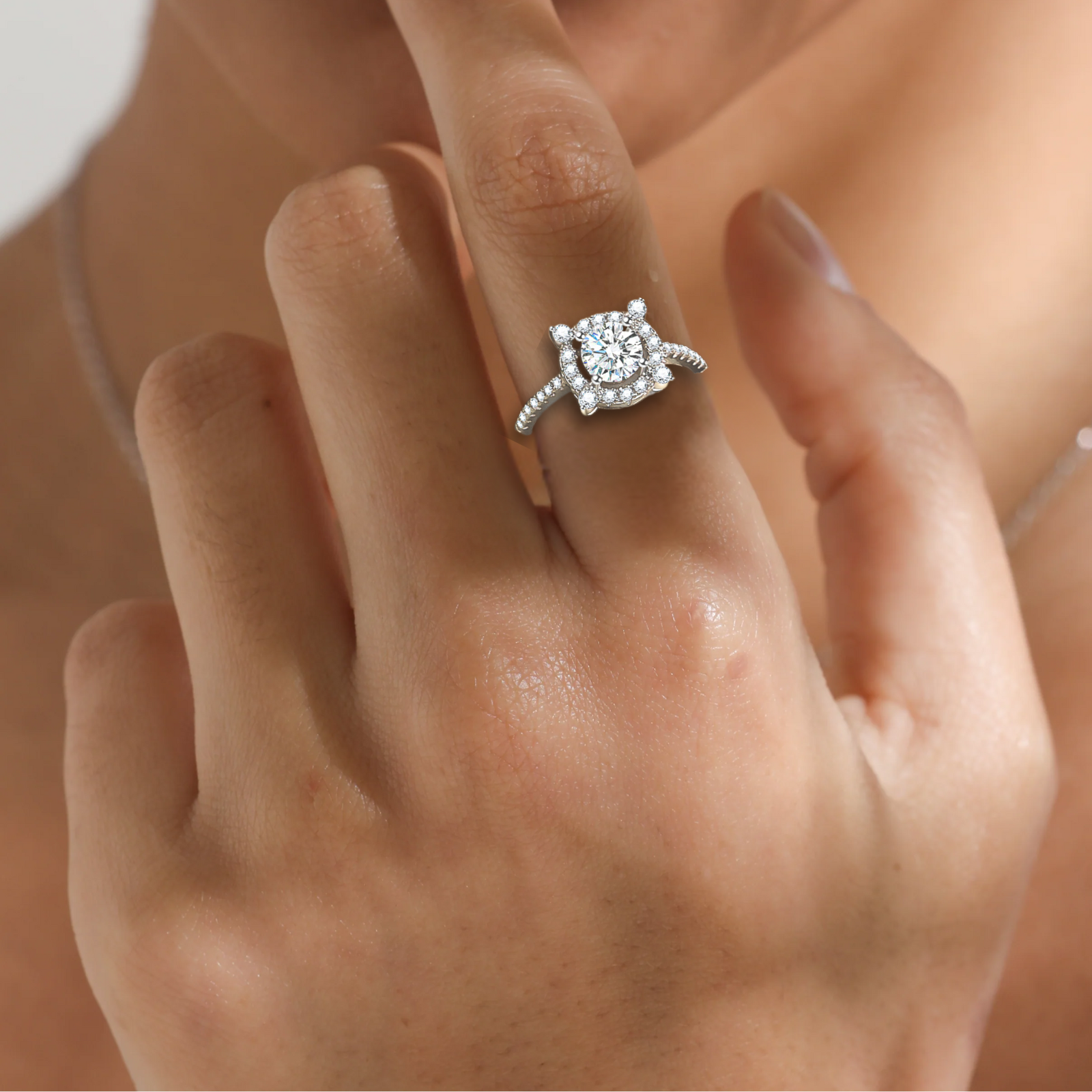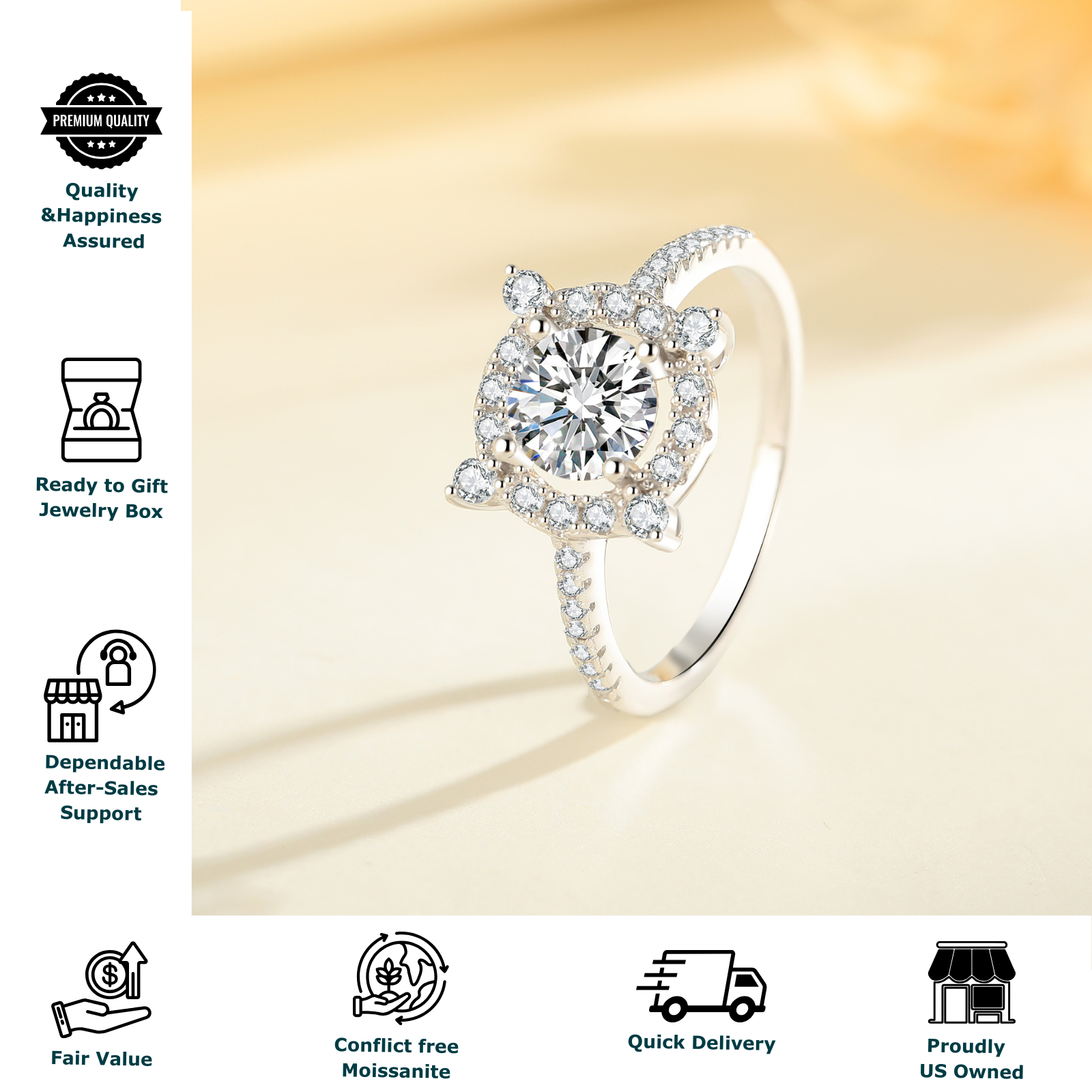 Moissanite Engagement Ring for Women, 1 Carat Round Cut Stone