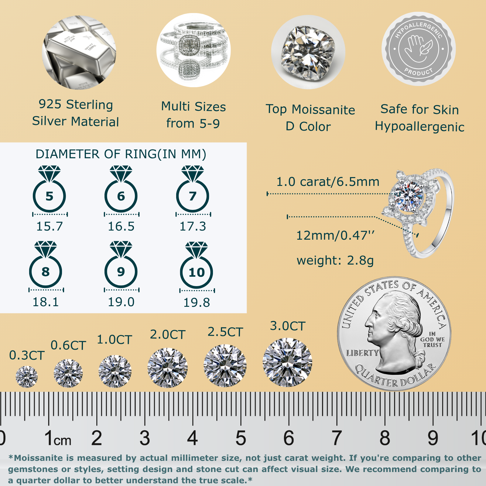 This Moissanite engagement ring features a brilliant 1-carat round cut stone set in hypoallergenic 925 sterling silver, making it an excellent choice for those with sensitive skin. Available in sizes 5 through 9, its classic design combines elegance with durability. Ideal for weddings or promise occasions, this ring offers a stunning alternative to traditional gemstones, ensuring long-lasting sparkle and meaning.