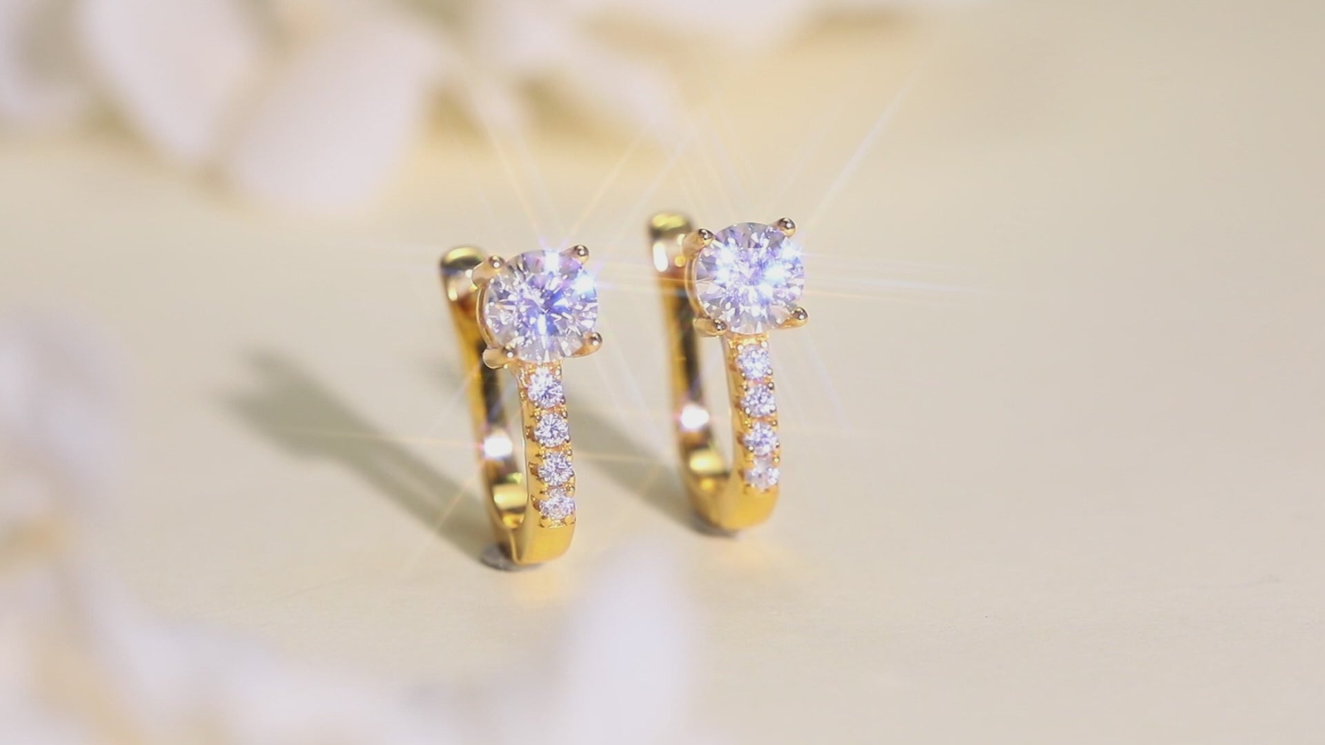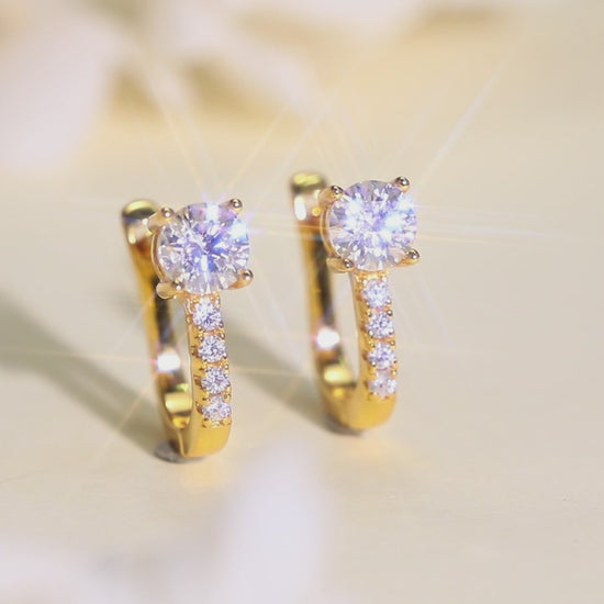Moissanite Hoop Silver Gold Earring for Women - 0.5 Carat Round Cut Hoop Earrings