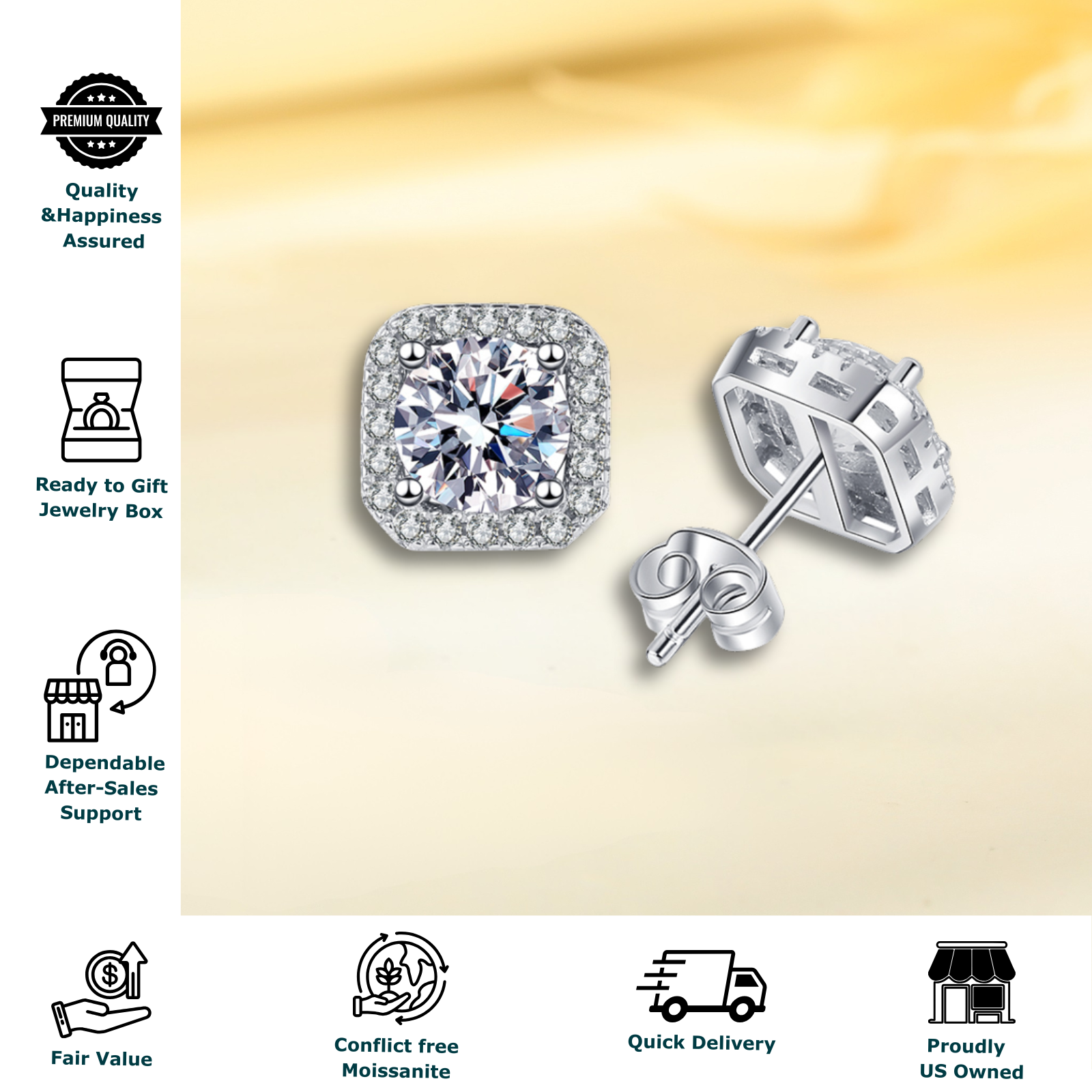 Discover the brilliance of our Moissanite Stud Earrings for Women and Men. Crafted with 925 Sterling Silver Push Back closure, these earrings feature a Halo Design with sparkling 1 Carat Moissanite stones. Elevate your style with these dazzling and affordable earrings.