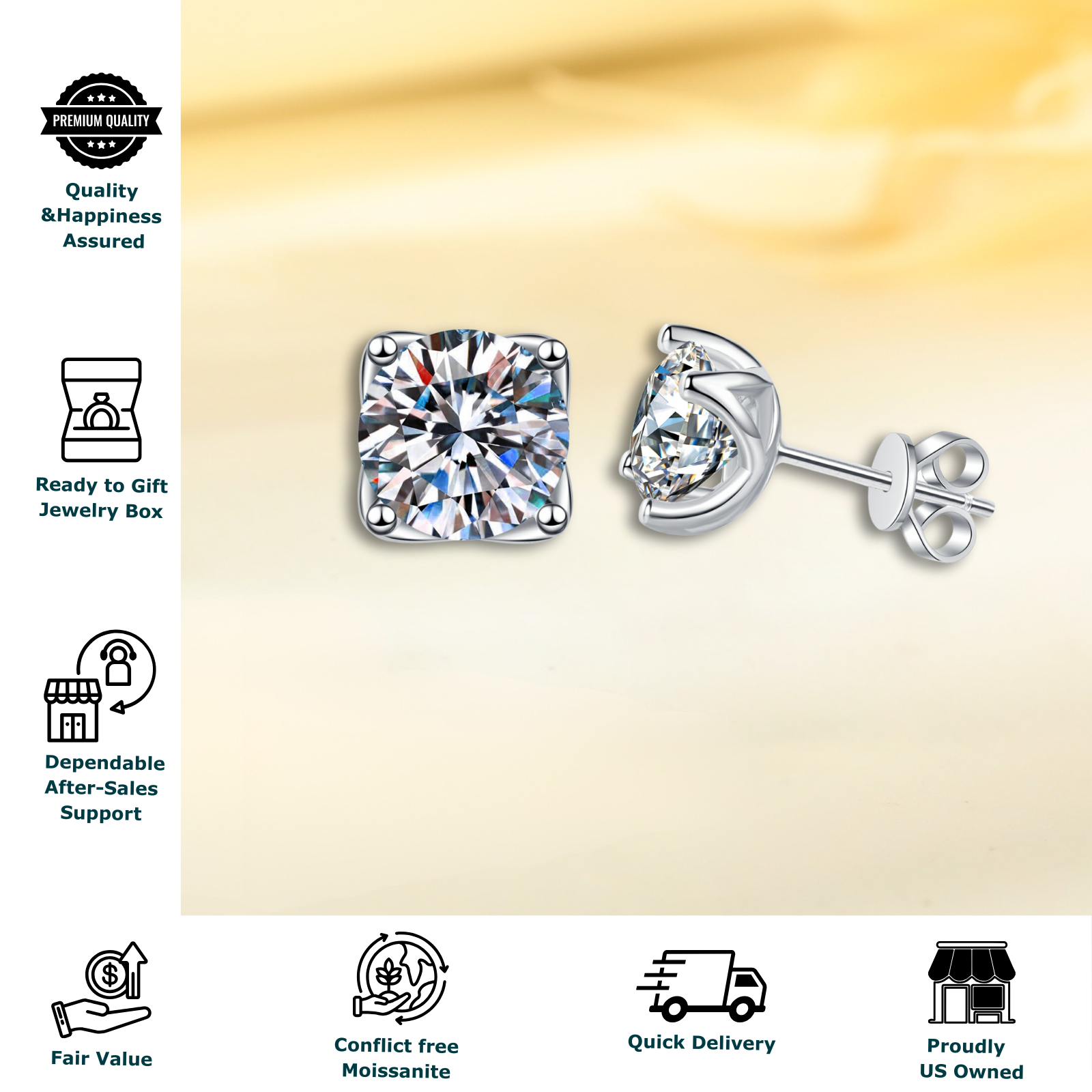 These Moissanite Stud Earrings are perfect for both women and men. Each earring features a stunning 1 carat round-cut Moissanite solitaire, set in high-quality 925 sterling silver with a secure push back closure. Enjoy the brilliance and beauty of diamonds at a fraction of the cost with these stylish and timeless stud earrings.